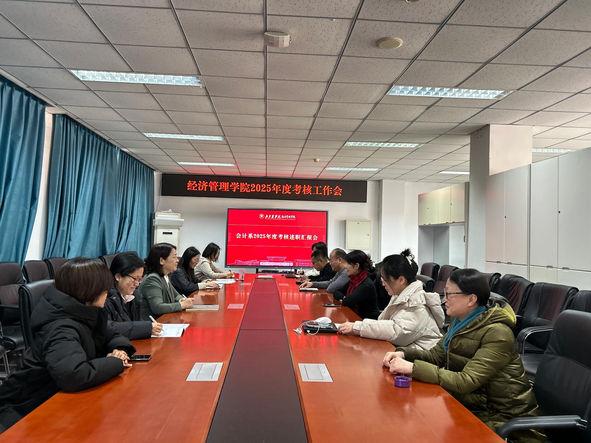 为深入贯彻落实党的教育方针和学校年度考核工作要求,2025年12月17日,经济管理学院组织召开2025年度教职工考核述职评议会。会议紧扣“立德树人”根本任务,坚持“以德为先、注重实绩、分级分类、考用结合、奖惩分明”原则,将师德师风作为评价第一标准,围绕岗位职责与年度工作任务,对全院教职工的政治素质、业务能力与工作实绩进行系统综合评价,旨在以科学精准的考核机制推动学院高质量发展,为服务教育强国战略、培养知农爱农、担当民族复兴大任的新型经济管理人才提供坚实支撑。