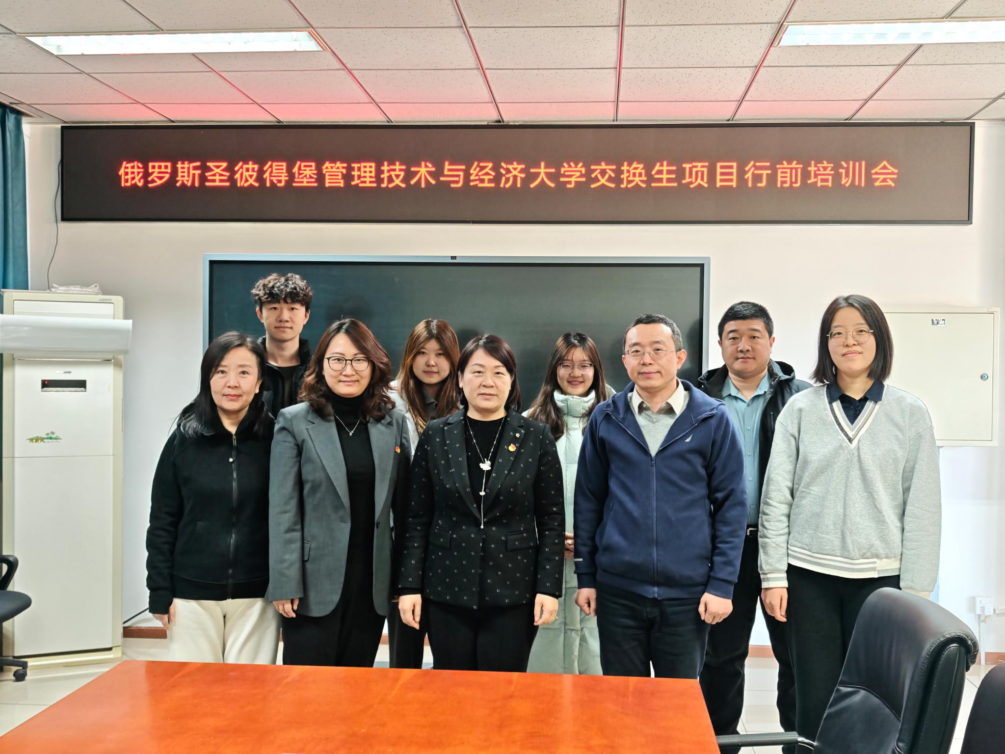 2026年1月23日下午,经管学院在经管楼401会议室召开2026年俄罗斯圣彼得堡管理技术与经济大学交换生出国留学行前培训会。培训会由国际合作与交流处敖日嘎、经管学院党委书记刘芳、副院长徐广才、副书记郝娜主讲,外事秘书余洁、辅导员李敬玉和三名交换生参加本次会议。副院长徐广才主持会议。
