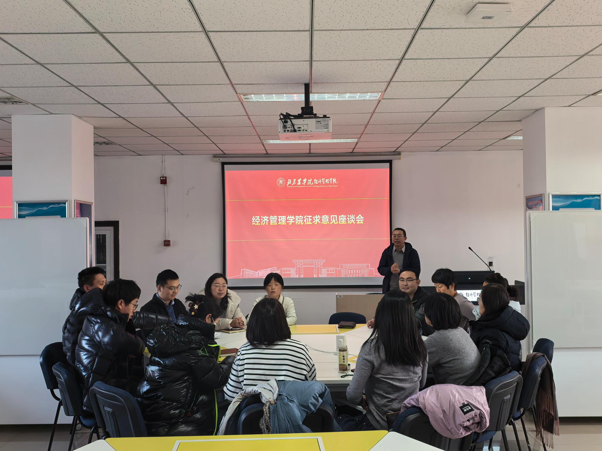 2026年1月23日,经济管理学院召开2025年度领导班子民主生活会征求意见座谈会。学院领导班子成员深入师生党支部围绕学院发展听取意见建议。