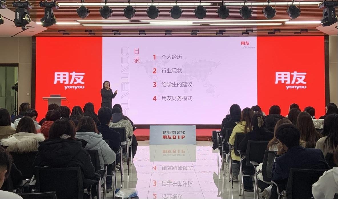 用友网络集团的两位资深专家为同学们带来了干货满满的职业发展分享。用友网络FSSC总监王斯卉女士以“职业发展与求职方向”为主题,结合个人经历,为同学们剖析了财会行业的现状与未来。用友网络FSSC费用核算经理司悦欣女士,为同学们带来了“用友FSSC工作流程透视”的实操性讲座。
