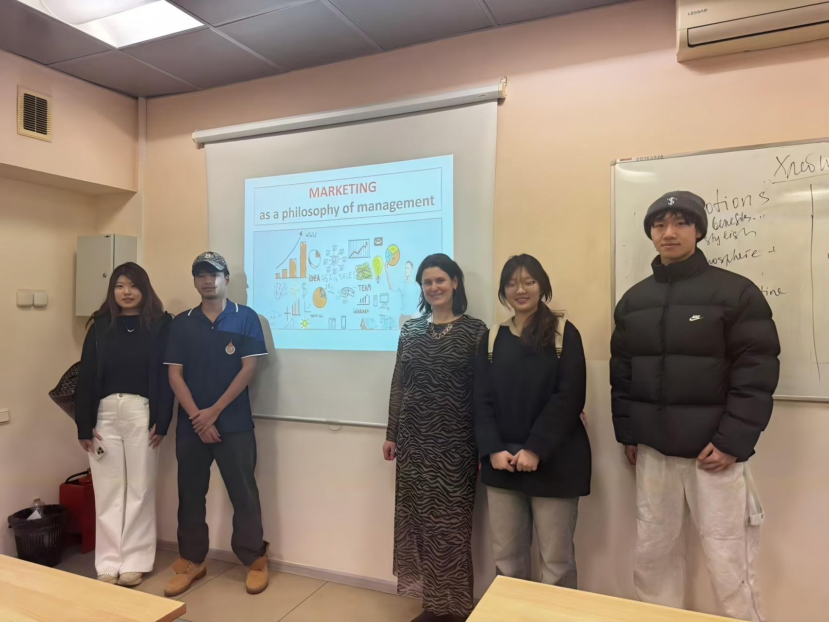 在俄罗斯圣彼得堡管理技术与经济大学,刘子缘、田源、米戌三位本科生积极适应全英文的教学环境与节奏,通过课前预习梳理专业词汇、课后研读英文文献、定期复盘知识体系,迅速养成了高效自主的学习习惯。在《市场营销学》《战略管理》《管理决策》等专业课程中,他们积极参与课堂互动、小组讨论,并主动分享见解。课程内容紧密结合全球商业案例,使同学们对不同文化背景下的商业运作有了更立体、更国际化的认知。课余时间,同学们不仅锻炼了独立生活能力,还通过参与“谢肉节”等当地传统节庆活动,深入体验了俄罗斯的历史文化,进一步拓宽了国际视野。