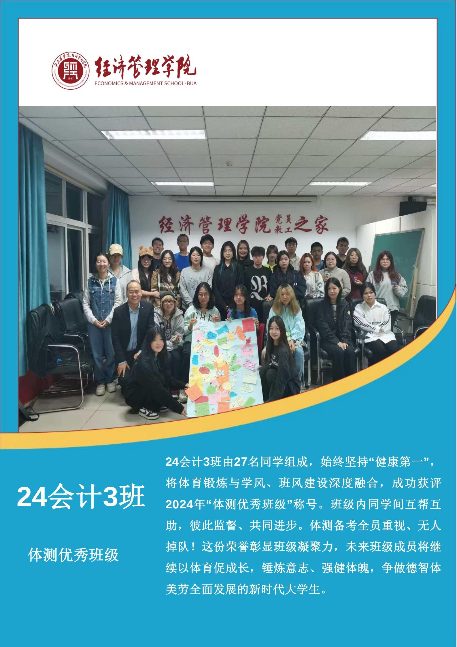 北京农学院2024-2025学年体测优秀班级:2024级会计3班